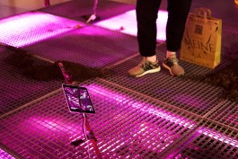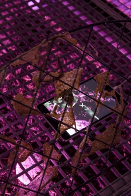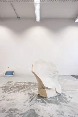 Der Blitzableiter, eigentlich Teil des Gebäudeschutzsystems, wird so umgeformt, dass ein Blitz potentiell von der Außenwitterung abgezogen und in den Ausstellungsinnenraum hineingeleitet werden könnte. Öffnungszeiten der Ausstellung werden nicht mehr zeitlich bestimmt, sondern abhängig von prognostizierten Wetterlagen; die Ebene des Ausstellungsraumes wird zur Risikolandschaft, die ein neues transformatives Potenzial für Material- und Systemabhängigkeiten eröffnet. In ungebranntem Ton gebundene Partikelsammlungen durchwandern den Raum auf Leitbahnen aus Kontaktgel. Der Dreck des Bodens wurde an die Wand gewalzt und scheint wie statisch geladen an ihr zu haften. – Charged Metabolism