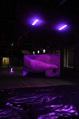 In der Ausstellung „Body without Narrator“ wird die digitale, planetare Entität „Latent Entity“ innerhalb der gläsernen Architektur des saasfee*pavillon, Frankfurt am Main, aktiv. „Latent Entity“ ist eine künstliche, partizipative Lebensform, ein kollektiver Organismus, der live mit dem Schlaf verschiedener Menschen weltweit* gekoppelt ist. Sie wird in der Videospiel-Engine Unity mit Hilfe von KI generiert und ist in Abhängigkeit von der Schlafaktivität der User*innen aktiv/inaktiv. Ihre sich verändernden, individuellen Schlafphasen und -zyklen beeinflussen dabei die Entwicklung und das Verhalten des kollektiven Organismus in Echtzeit.