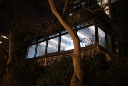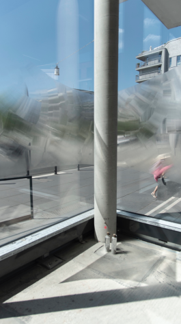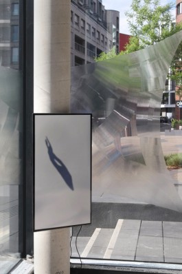 window <location> platziert Störungen an der transparenten architektonischen Schwelle von innen und außen und irritiert so die wechselseitige Wahrnehmung beider Räume. Digital anmutende Szenarien entstehen und erzeugen Grids und abstrakte Charaktere, die in Abhängigkeit vom einfallenden Licht durch den Raum wandern.