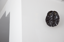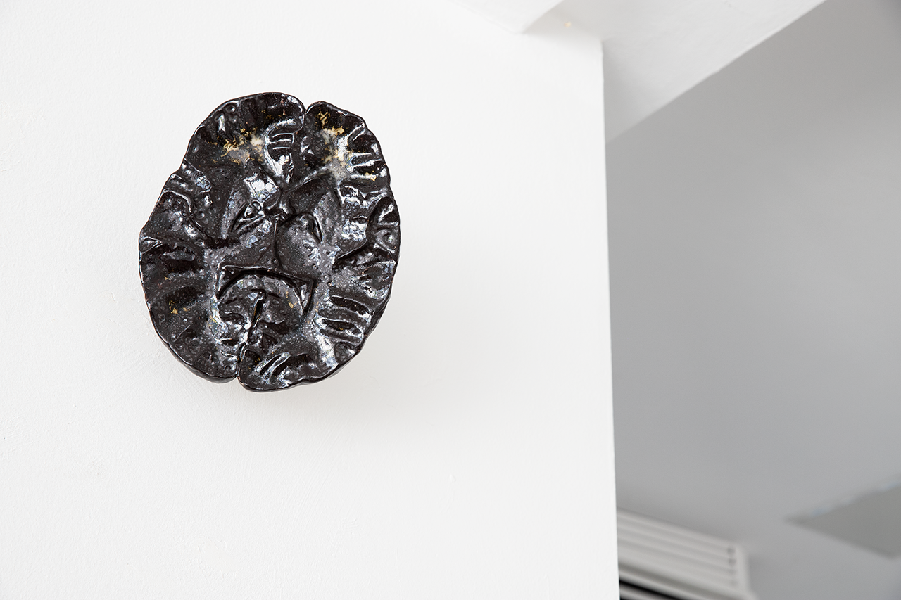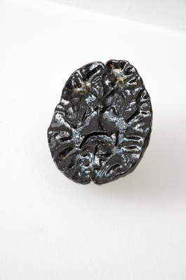 „Topography of a Thought“ ist eine fortlaufende Serie an Keramiken, die das bildgebende Verfahren von fMRT (funktionelle Magnetresonanztomografie) nutzen um Gehirnaktivität darzustellen und einen Gedanken zu kartographieren. Gemeinsam rekonstruieren die einzelnen Keramiken die Bewegung eines Gedankens innerhalb der dreidimensionalen Gehirnstruktur, die in einzelne Bilder aufgespalten wird. Auf schwenkbaren Monitorhalterungen montiert blicken die Keramiken in den Raum zurück.