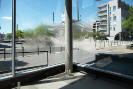 window <location> (seit 2014) ist eine Serie aus temporären und ortsspezifischen Fettinterventionen auf Glasoberflächen.