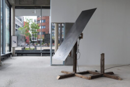 The lightning rod, which is actually part of the building’s protection system, is transformed in such a way that lightning could potentially be drawn away from the outside weather and directed into the exhibition space. The opening hours of the exhibition are no longer determined by time, but depend on the forecast weather conditions; the exhibition space becomes a risk landscape, opening up new transformative potential for material and system dependencies. Collections of particles bound in unfired clay wander through the space on contact gel pathways. The dirt from the floor has been rolled onto the wall and seems to stick to it as if statically charged.